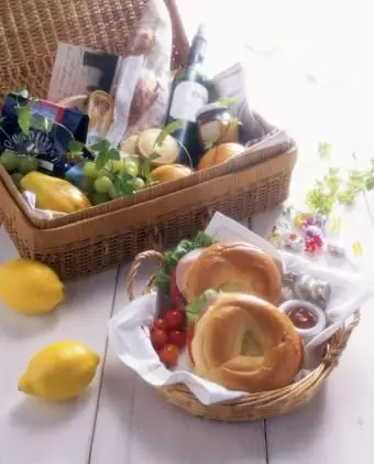 이 선물 바구니는 앉아있는 시바 , 그리고 또한 장례식 후 리셉션에 가져갈 적절한 추가가 될 것입니다. 가격은 약 120 달러이며 고리 버들 바구니와 새틴 활로 장식 된 황마로 제공됩니다.
