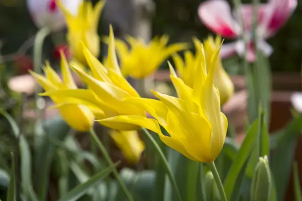 튤립a 햇볕에 촉촉하지만 배수가 잘되는 토양의 'West Point'. 다음 해에 개화를 장려하기 위해 Deadhead는 시드 생산에 에너지를 사용하여 전구를 방지하고 고 포쉬 비료를 공급하기 위해 꽃을 보냈습니다. 개화 후 단풍이 완전히 죽을 수 있도록하십시오. 또는 연간으로 취급하십시오.